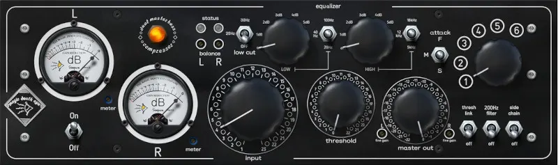 The second product of the ongoing and very fruitful collaboration with MagicDeathEye is a faithful emulation of their stereo master buss compressor & equalizer. From the description of the hardware: “The stereo compressor is two mono compressor circuits with some extras designed for mastering and buss compression duties. This new version has an added EQ section. There are two (boost only) bands with two frequency selections each. The EQ is worked into the Variable Mu tube gain structure. This means it is not before or after the compression section, it is within it! The EQ circuit is inductor based and has wide curves for giving program material that “little something”. There is also a two frequency low cut for tightening up out of control bass. The boost of the bands can be 5dB or 3dB split between 5 steps. I spent a lot of time shaping this EQ mastering everyday and fine tuning the components on the weekends. It sounds absolutely fabulous!”